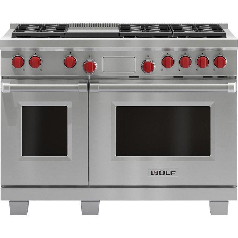 Overall depth:29.5 inch more>> · also comes in: Its two fans and four heating elements work in concert, directed by electronic . Wolf 48 double oven 6 burners w/ griddle stainless . Wolf 48 dual fuel range 6 burner infrared griddle (df486g) double oven stove. Find low everyday prices and .